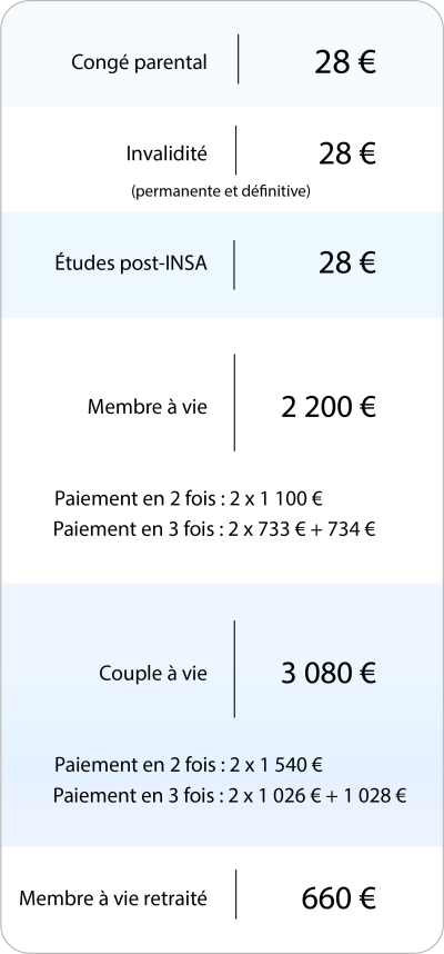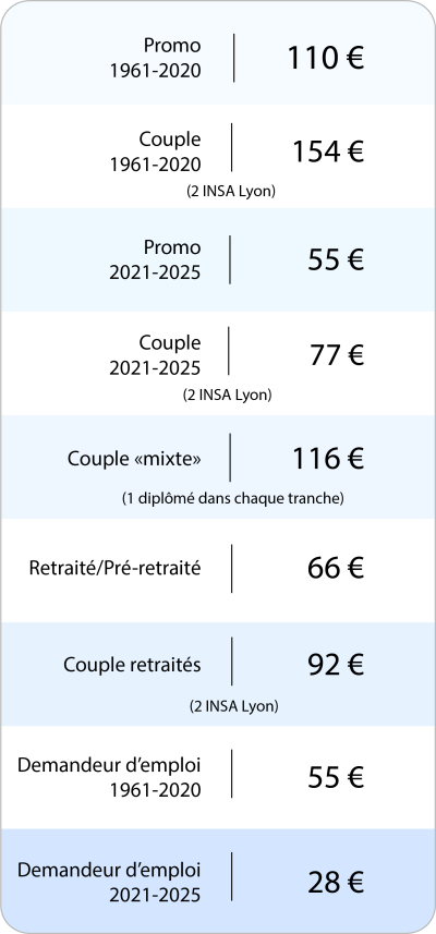 ALUMNI INSA LYON a mis en place une grille tarifaire pour les diplômés travaillant et résidant à l'étranger :