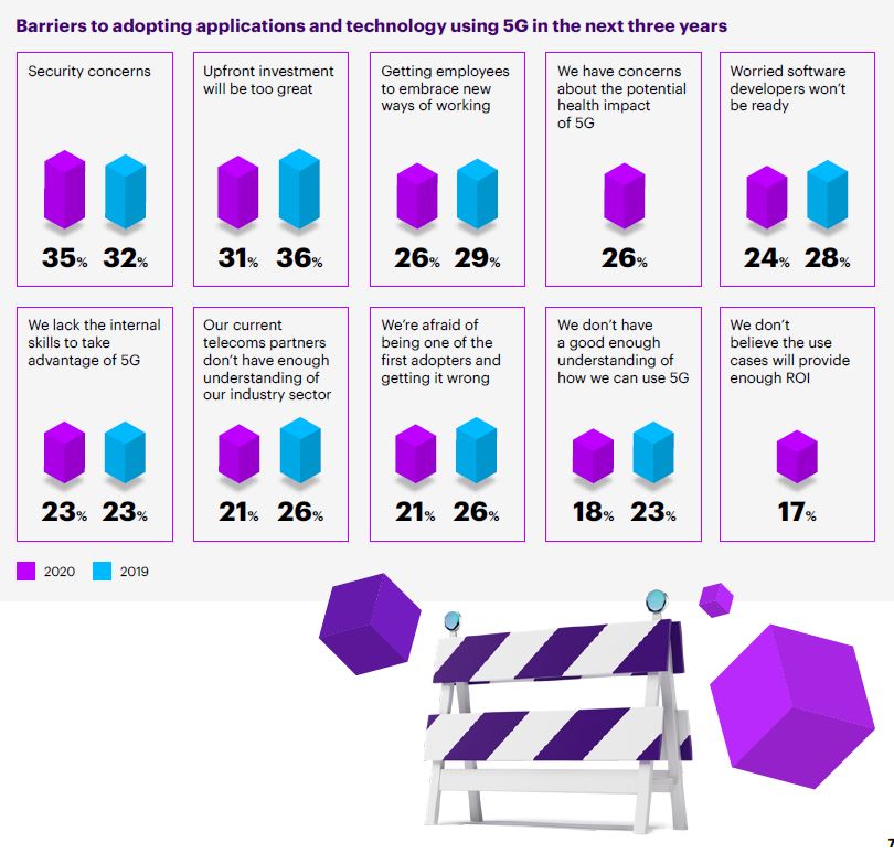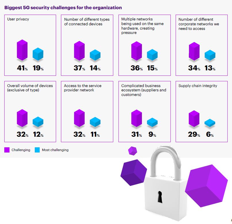 D’après les dernières études qu’Accenture1 a menées, la sécurité est une des principales sources d’inquiétude pour les entreprises quand on les questionne sur leur projets et ambitions autour de la 5G. Parmi ces inquiétudes, on retrouve des sujets autour de la complexité technologique, des volumétries de connexion ou encore de la sécurité des données (notamment personnelles).