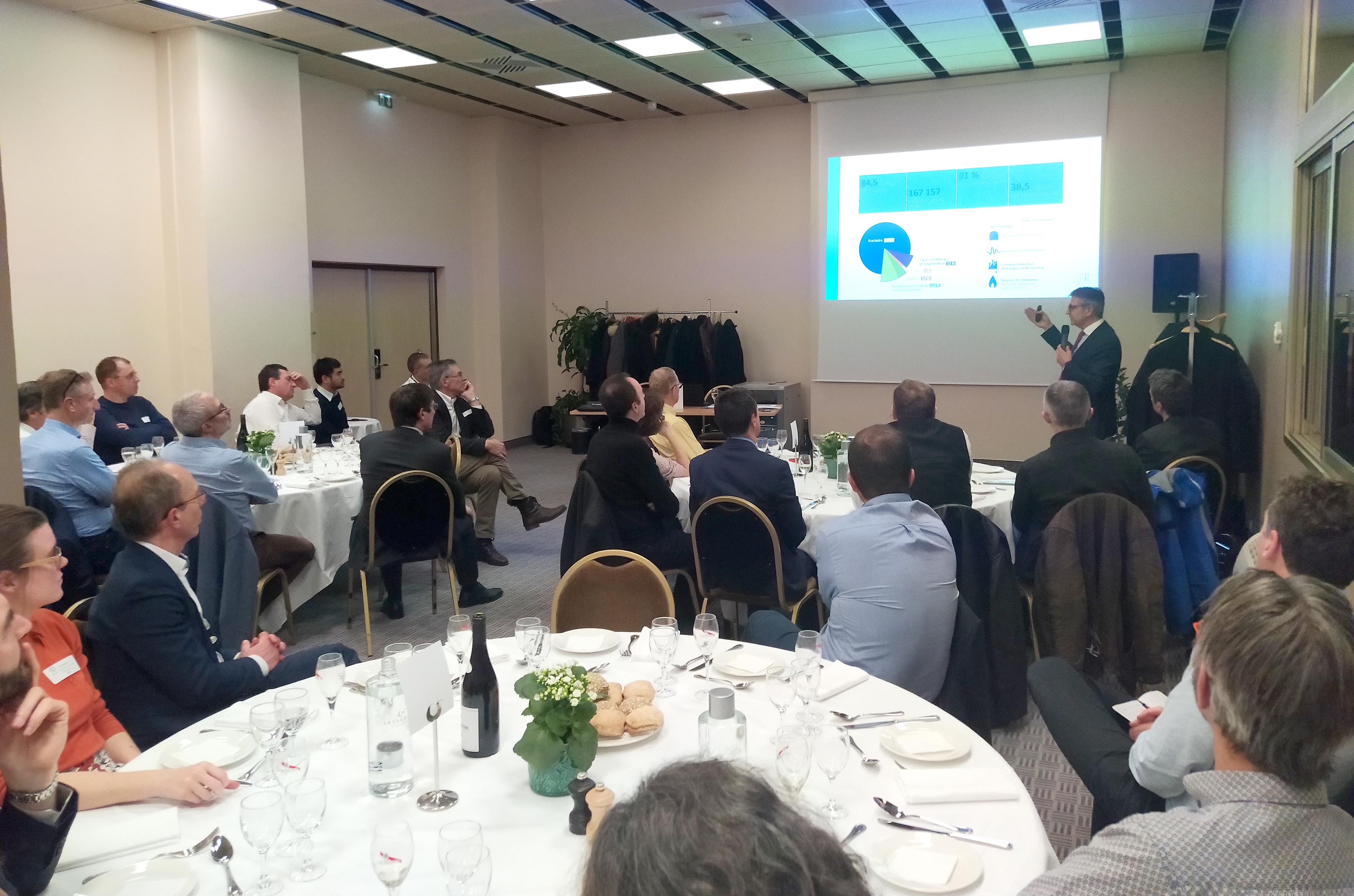 → La réussite d’un Entrepreneur Développeur par Monsieur Christophe GRUY, Président Directeur Général du Groupe MAÏA, qui nous a présenté le parcours de son Entreprise, un des fleurons de l’industrie Lyonnaise dans les domaines des infrastructures ferroviaires, de l’énergie et de l’immobilier de luxe (38 participants).